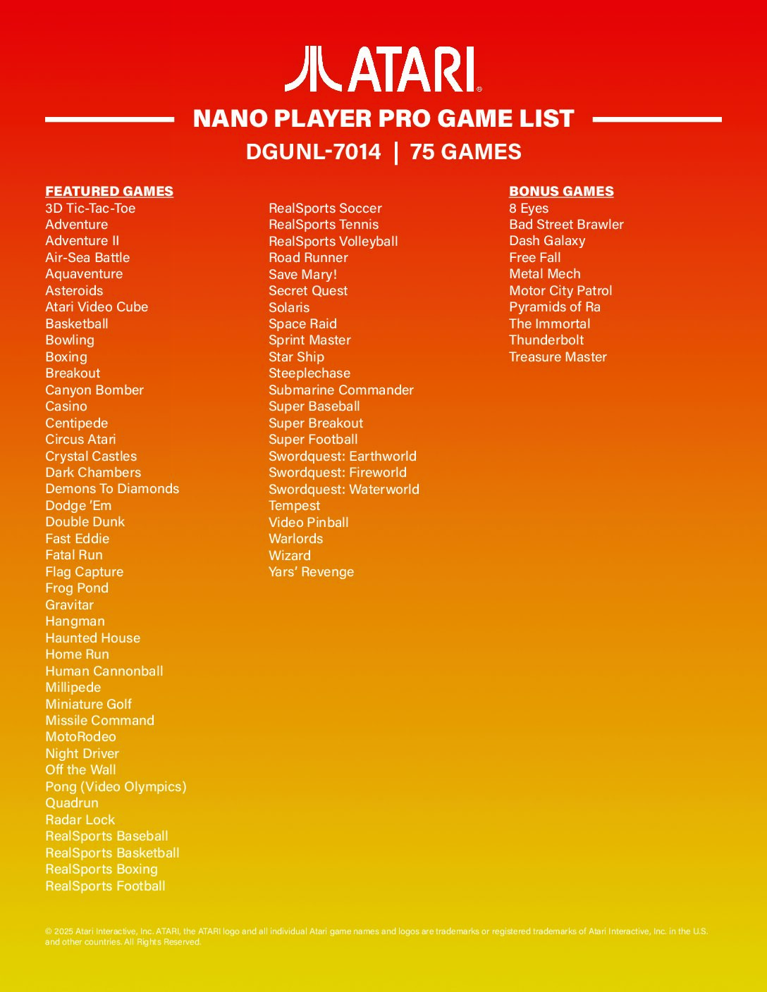 • Titles include Pong®, Asteroids®, Centipede®, Millipede®, Breakout®, Missile Command®, Tempest® and many more