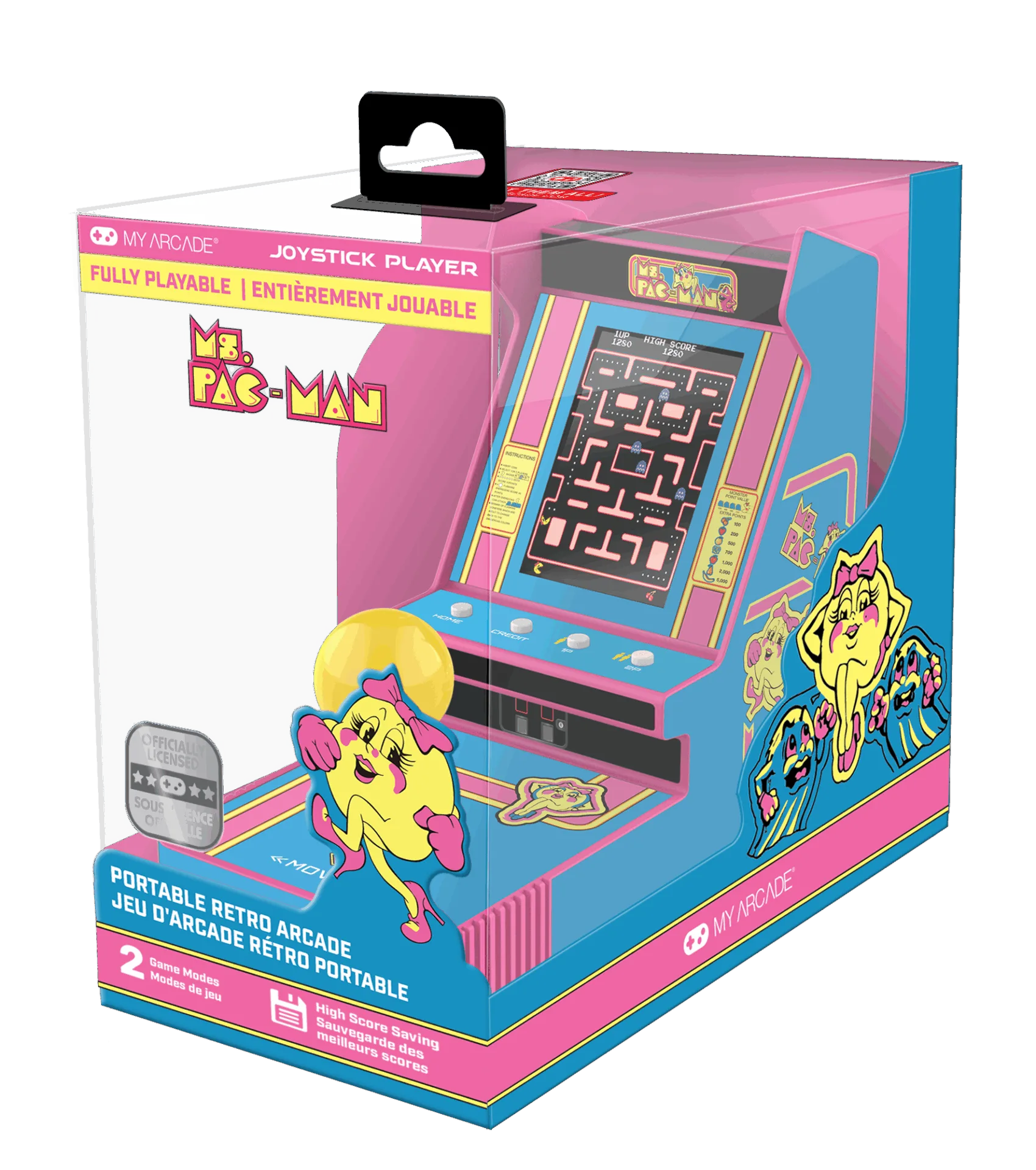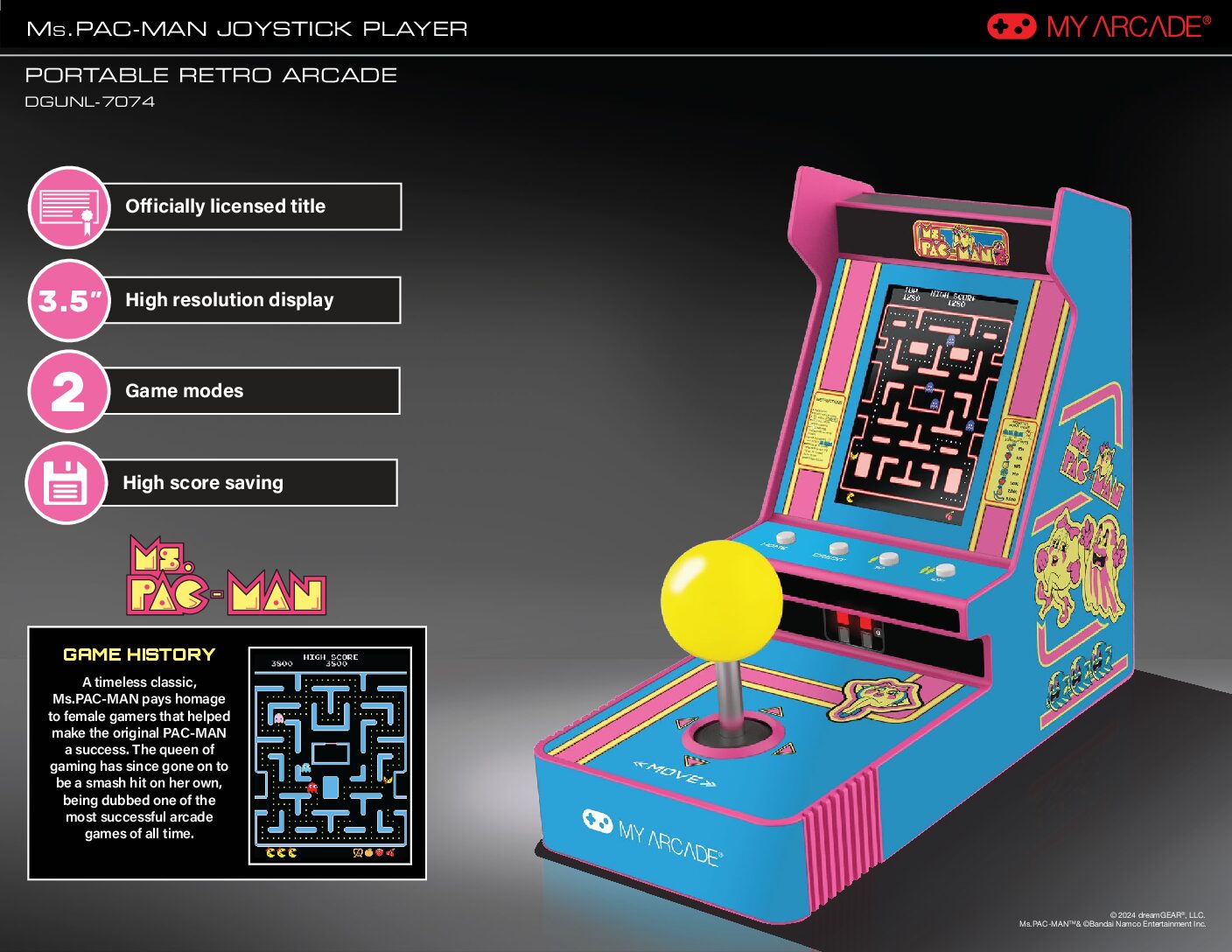 • Features artwork inspired by the original MS. PAC-MAN arcade cabinet.