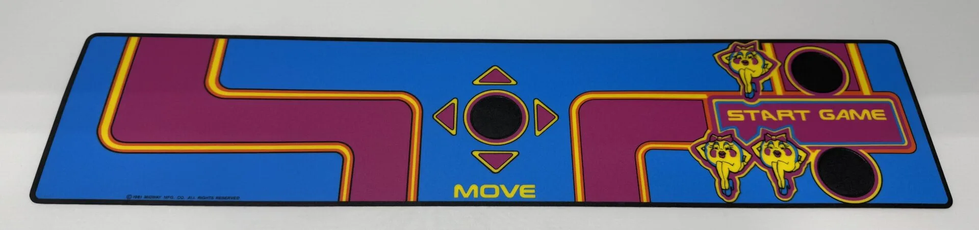 Ms Pac Man control panel overlay.  Printed on 3M vinyl, same look and feel as the original from the 80s.