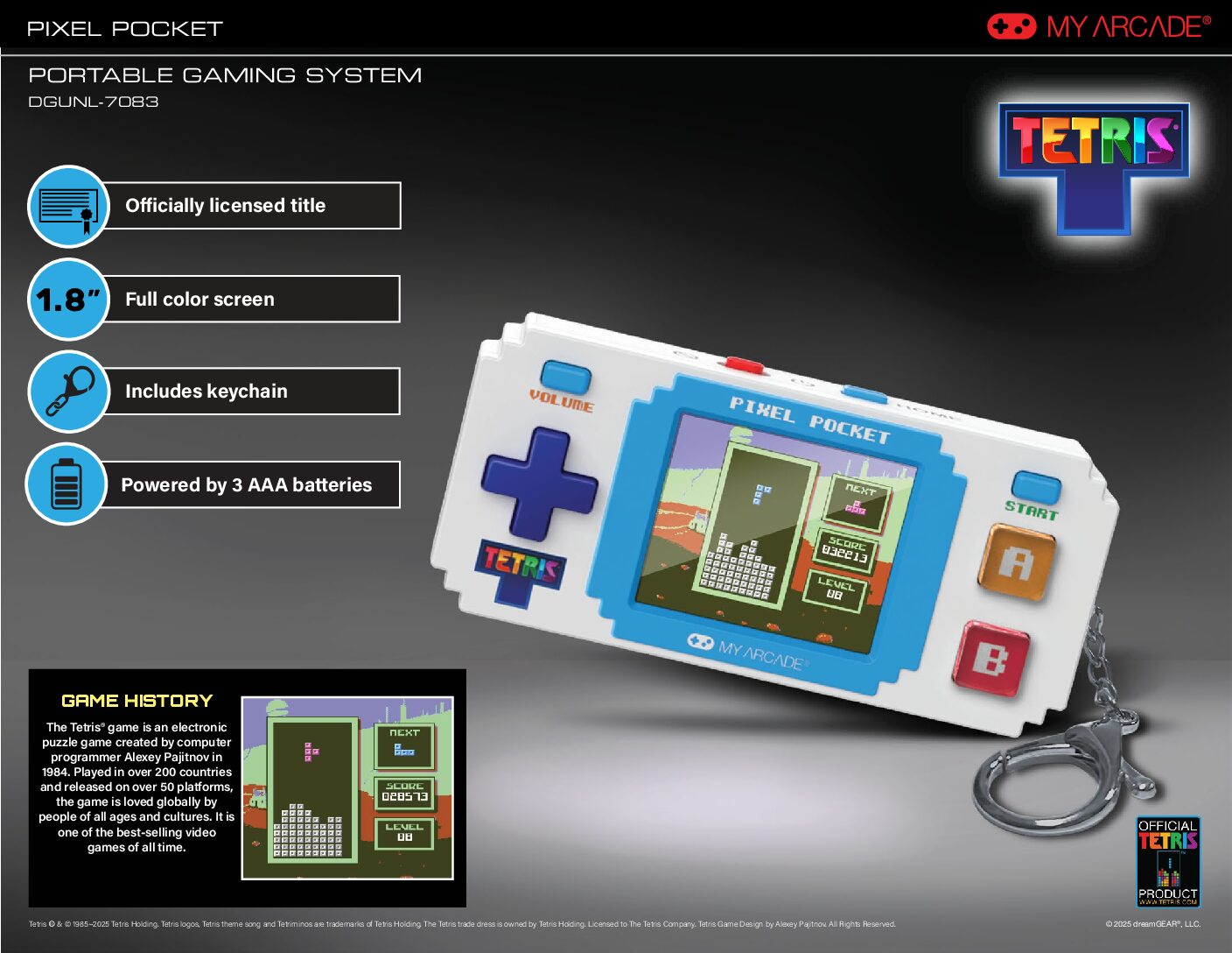 Pixel Pocket Tetris Hand Held Pocket Portable Gaming System With 10 Games